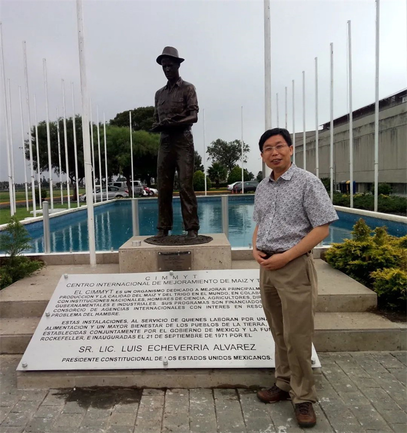 圖11分子育種踐行者徐云碧博士與CIMMYT總部的諾曼·布勞格雕像。上圖:2015年6月19日;下圖:2018年5月29日