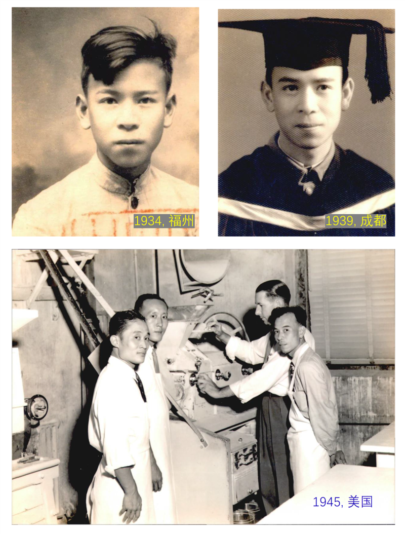 圖2 莊巧生先生福州三山中學(xué)、四川成都金陵大學(xué)畢業(yè)時(shí)留影以及美國(guó)進(jìn)修時(shí)的工作照(右一)(照片來(lái)自網(wǎng)絡(luò))