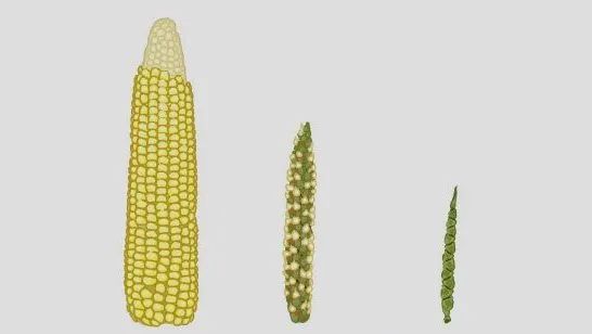 玉米的祖先是一種叫做大芻草的野草,后經(jīng)人工育種改良而成。圖片來源:learn.genetics.utah.edu。
