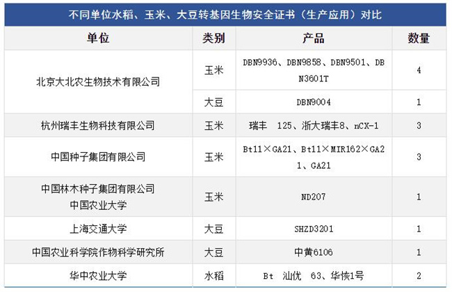 直到今天,以它們領(lǐng)銜的“4企1校1所”,仍是我國,尤其是轉(zhuǎn)基因玉米的主要研發(fā)單位——中國農(nóng)業(yè)大學(xué)、中國農(nóng)業(yè)科學(xué)院、大北農(nóng)、杭州瑞豐、隆平生物、先正達(dá)。根據(jù)統(tǒng)計(jì),目前我國有11個轉(zhuǎn)基因玉米獲得生產(chǎn)應(yīng)用的安全證書,其中,大北農(nóng)占了4個;杭州瑞豐占3個;先正達(dá)旗下的中國種子集團(tuán)有限公司,也剛剛獲批通過了3個。