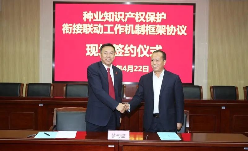 雙方簽訂的種業(yè)知識產(chǎn)權(quán)保護銜接聯(lián)動工作機制框架協(xié)議主要就種業(yè)知識產(chǎn)權(quán)的行政與司法保護工作進行了約定,內(nèi)容包括建立信息交流互通機制、完善知識產(chǎn)權(quán)行政救濟與司法救濟的銜接、成立種業(yè)知識產(chǎn)權(quán)專家?guī)?,協(xié)同開展種業(yè)知識產(chǎn)權(quán)保護宣傳等工作。綜合運用行政監(jiān)管、司法審判、仲裁調(diào)解等多種手段,形成種業(yè)保護合力,共同維護品種權(quán)人及制種企業(yè)的合法權(quán)益。