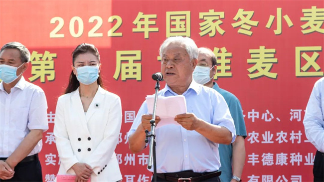 農(nóng)業(yè)農(nóng)村部小麥專家指導(dǎo)組顧問(wèn)、河南農(nóng)業(yè)大學(xué)教授郭天財(cái)在代表專家組發(fā)言時(shí)說(shuō),糧食安全是國(guó)家安全的基礎(chǔ)和壓艙石,在百年未有之大變局下,全球糧食供應(yīng)鏈出現(xiàn)新的危機(jī)。我國(guó)創(chuàng)造了“18年連豐”,涌現(xiàn)了畝產(chǎn)800公斤以上的高產(chǎn)田等等可喜成績(jī);郭教授繼續(xù)說(shuō)“好種多打糧”說(shuō)明種子的重要性,本次活動(dòng)的舉辦為促進(jìn)小麥種業(yè)合作創(chuàng)新,引領(lǐng)小麥種業(yè)發(fā)展方向,協(xié)同合力解決種業(yè)發(fā)展“卡脖子”,為國(guó)家糧食安全做出新的重大貢獻(xiàn)。