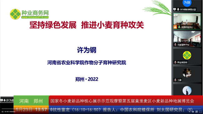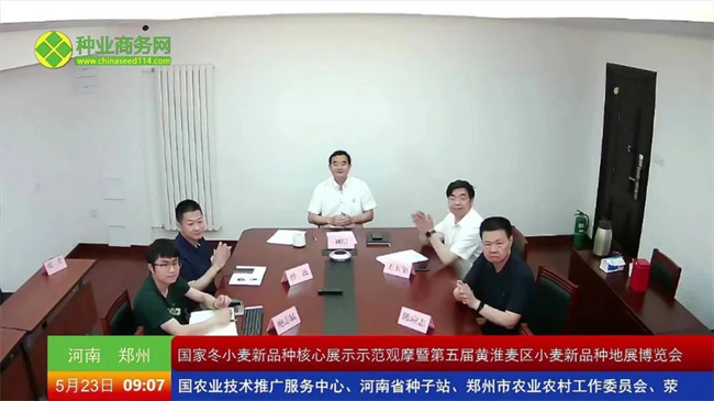 全國(guó)農(nóng)業(yè)技術(shù)推廣服務(wù)中心劉信副主任通過(guò)視頻講話,他首先感謝有關(guān)單位對(duì)本屆會(huì)議的大力支持。他說(shuō)河南是農(nóng)業(yè)強(qiáng)省、華夏糧倉(cāng),小麥種子市場(chǎng)份額和小麥產(chǎn)量長(zhǎng)期雄踞全國(guó)第一,具有開展國(guó)家黃淮麥區(qū)小麥新品種展示示范觀摩活動(dòng)的天然優(yōu)勢(shì)。2018年至今,國(guó)家黃淮麥區(qū)小麥新品種展示示范觀摩活動(dòng)已連續(xù)在河南舉辦5屆,累計(jì)展示評(píng)價(jià)新品種1050 個(gè)次,其中核心展示品種69個(gè)次,參與種子企業(yè)484 余家,線上線下參加觀摩培訓(xùn)超過(guò)100萬(wàn)人次。