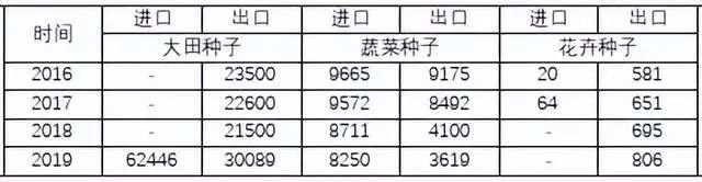 圖表13. 2016-2019年我國種子進(jìn)出口情況(單位:噸)