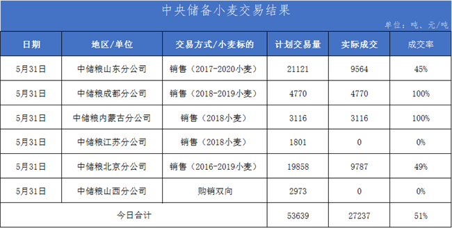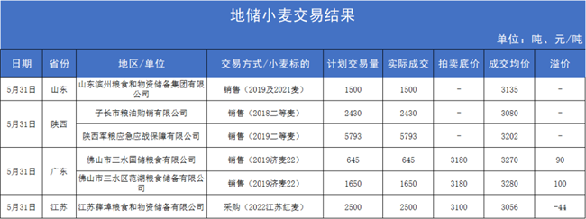 圖2:5月31日地儲(chǔ)小麥交易結(jié)果