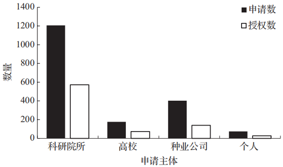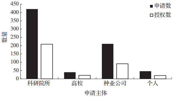 圖2 我國各申請主體大豆新品種權(quán)申請與授權(quán)情況