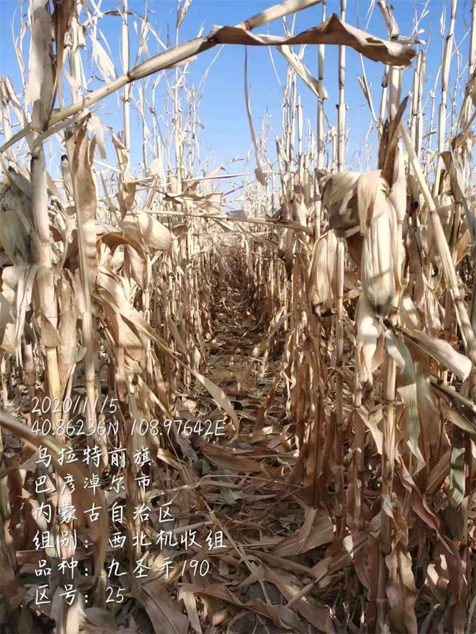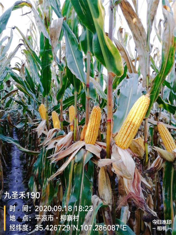 九圣禾190抗大斑病、青枯病。在2020年甘肅平?jīng)鳇c大斑病非常重,但是九圣禾190表現(xiàn)出較好的抗病性。