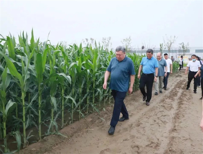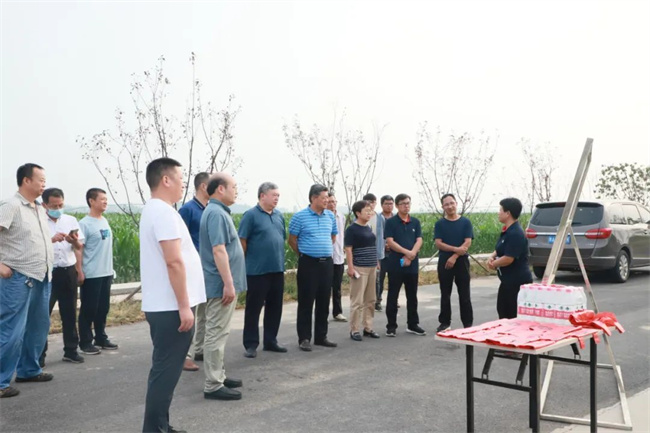 7月15日, 河南省種業(yè)發(fā)展中心主任馬運糧,副主任周繼澤、滕開瓊,河南秋樂種業(yè)科技股份有限公司總經(jīng)理侯傳偉及河南省種業(yè)發(fā)展中心其他領(lǐng)導(dǎo)一行冒著酷暑來到2022年國家玉米新品種核心展示河南新鄉(xiāng)展示點考察玉米田間長勢情況。