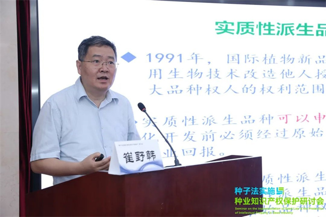 農業(yè)農村部科技發(fā)展中心總農藝師、國際植物新品種保護聯(lián)盟理事會副主席崔野韓在會上介紹,新修改的《種子法》首次建立了實質性派生品種制度(EDV制度),為激勵育種原始創(chuàng)新提供了新的動力機制。后續(xù)的實施將在充分考慮我國國情和種業(yè)發(fā)展水平的基礎上,細化實施細則,分作物制定EDV糾紛處理指南和EDV鑒定技術規(guī)程。采取分類、分步實施策略,確保對種業(yè)安全風險的有效管控。