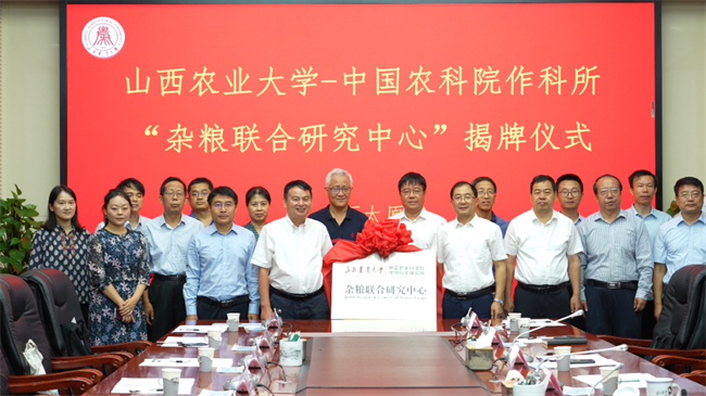 8月1日,山西農(nóng)業(yè)大學(xué)—中國(guó)農(nóng)科院作科所“雜糧聯(lián)合研究中心”揭牌儀式在山西省太原市舉行,作科所所長(zhǎng)、中國(guó)科學(xué)院院士錢前和山西農(nóng)業(yè)大學(xué)黨委書記廖允成共同為“雜糧聯(lián)合研究中心”揭牌,山西省科學(xué)技術(shù)廳二級(jí)巡視員蔡穎鑫,山西省農(nóng)業(yè)農(nóng)村廳二級(jí)巡視員閆寅寶,作科所副所長(zhǎng)王文生,山西農(nóng)大校長(zhǎng)張強(qiáng)、副校長(zhǎng)孔照勝,國(guó)家谷子高粱產(chǎn)業(yè)技術(shù)體系首席科學(xué)家刁現(xiàn)民,以及雙方雜糧專家代表等見證了揭牌儀式。