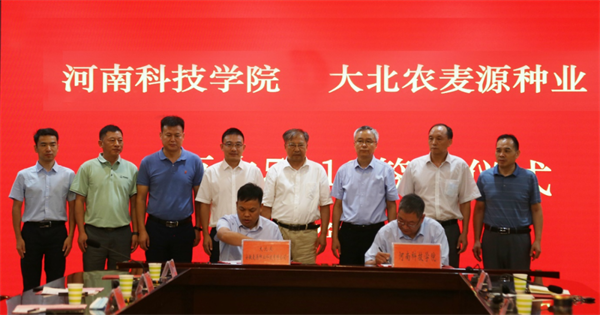 8月15日上午,河南科技學(xué)院與安徽麥源種業(yè)成功舉行高光效新品種百農(nóng)5819簽約儀式,河南科技學(xué)院極為重視此次與大北農(nóng)的合作,黨委書記宋亞偉,副校長(zhǎng)賈積身,科技處處長(zhǎng)馬漢軍、農(nóng)學(xué)院院長(zhǎng)劉明久、河南科技學(xué)院教授茹振鋼、學(xué)院小麥中心主任胡鐵柱等領(lǐng)導(dǎo)、專家出席見(jiàn)證!大北農(nóng)豐度高科董事長(zhǎng)王石、副總經(jīng)理肖強(qiáng),大北農(nóng)集團(tuán)院校合作部戶俊峰總經(jīng)理、安徽麥源種業(yè)孫善超總經(jīng)理、大北農(nóng)豐度高科谷物協(xié)創(chuàng)中心黃海經(jīng)理等參加活動(dòng)!