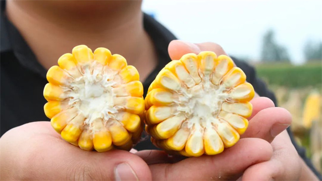 農(nóng)大778突出的的授粉能力,避免了因高溫影響而產(chǎn)生的花粒、禿尖等現(xiàn)象,深深扎入土壤的根系,不僅能抗倒伏,也給玉米吸收地下養(yǎng)分起到了關(guān)鍵作用。在觀摩現(xiàn)場(chǎng),長(zhǎng)勢(shì)良好、豐收在望的農(nóng)大778依然不負(fù)眾望。一粒封頂,籽粒晶瑩透亮,讓觀摩人員紛紛豎起大拇指,這是他們對(duì)農(nóng)大778的認(rèn)可和夸贊,也讓他們能給大家為廣大種植戶(hù)推薦如此好的品種而倍感欣慰!