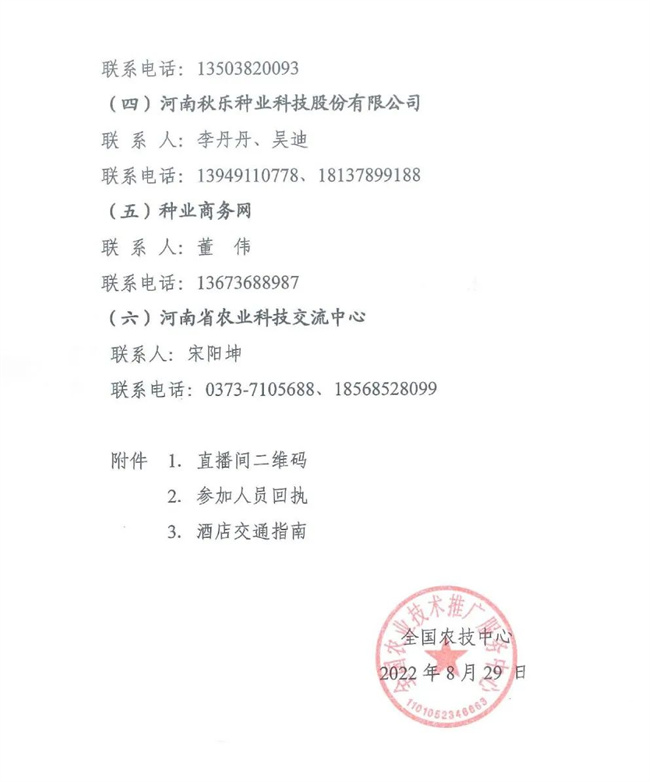 (三)本次活動會務(wù)工作委托河南省種業(yè)發(fā)展中心、國家生物育種產(chǎn)業(yè)創(chuàng)新中心、河南秋樂種業(yè)科技股份有限公司和種業(yè)商務(wù)網(wǎng)承辦。