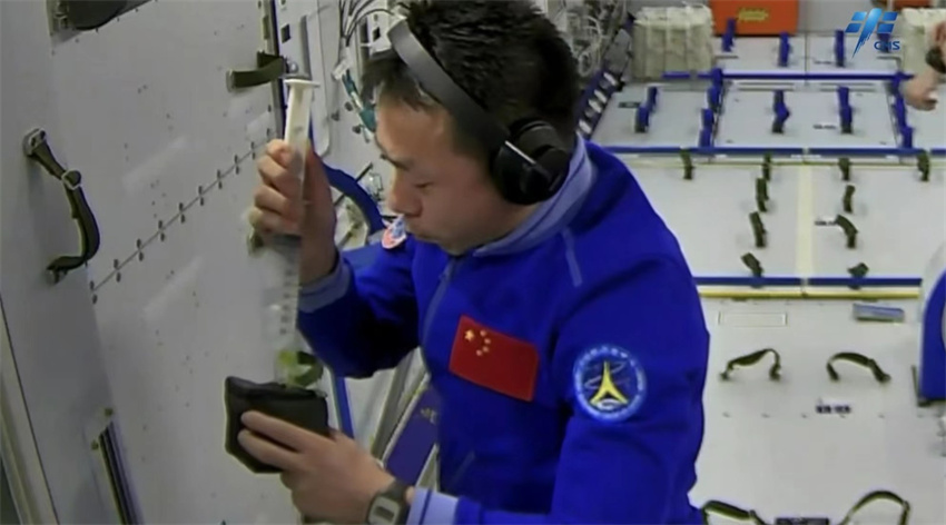 航天員蔡旭哲細(xì)心“呵護(hù)”在軌實(shí)驗(yàn)生物樣品。(來源:中國載人航天工程辦公室官方平臺)