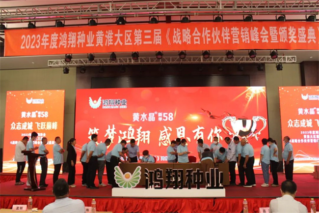 8月31日,以“眾志成城,飛躍巔峰”為主題的2022-2023年度鴻翔種業(yè)黃淮大區(qū)第三屆戰(zhàn)略合作伙伴營銷峰會暨頒獎盛典在美麗的山東泰安肥城成功舉行。吉林省鴻翔農(nóng)業(yè)集團鴻翔種業(yè)有限公司總經(jīng)理賀偉,杭州瑞豐生物孫永政,河南省新鄉(xiāng)市農(nóng)科院玉米所所長鄭秋道、副所長馬俊峰,吉林省鴻翔農(nóng)業(yè)集團鴻翔種業(yè)有限公司黃淮大區(qū)總監(jiān)孟劍,來自山東、河南、安徽等黃淮區(qū)域的合作伙伴共500余人參加了活動。