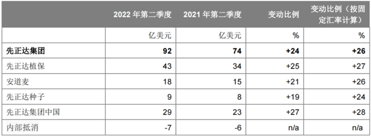 數(shù)據(jù)顯示,先正達(dá)第二季度營業(yè)收入達(dá)到92億美元,比去年同期增加18億美元,同比增長(zhǎng)24%。第二季度息稅折舊攤銷前利潤(rùn)(EBITDA)達(dá)17億美元,同比增長(zhǎng)39%。2022年上半年,先正達(dá)營業(yè)收入達(dá)181億美元,比去年同期增加37億美元,同比增長(zhǎng)25%。上半年EBITDA達(dá)35億美元,同比增長(zhǎng)32%。