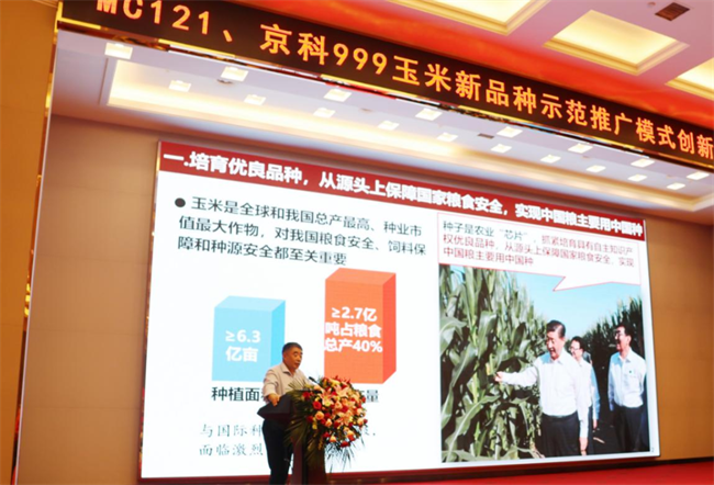 河南省種業(yè)發(fā)展中心在會(huì)上介紹了MC121-京科999示范展示情況,并表示,要采取有力措施推動(dòng)這兩個(gè)玉米新品種大規(guī)模產(chǎn)業(yè)化和大面積推廣應(yīng)用。