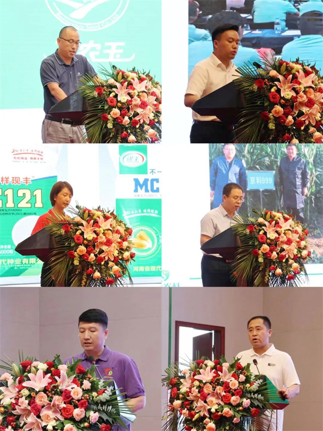 在隨后的室內(nèi)交流環(huán)節(jié),河南省農(nóng)業(yè)農(nóng)村廳種業(yè)管理處處長江傳杰首先致辭。他說,全國農(nóng)業(yè)技術(shù)推廣服務(wù)中心是國家級(jí)農(nóng)作物栽培、科學(xué)施肥、旱作節(jié)水農(nóng)業(yè)等重大技術(shù)、優(yōu)良品種試驗(yàn)、示范與推廣的專業(yè)機(jī)構(gòu),長期以來致力于優(yōu)良農(nóng)作物品種的示范推廣。北京市農(nóng)林科學(xué)院作為首都現(xiàn)代農(nóng)業(yè)綜合性科研機(jī)構(gòu),多年來取得豐富的科研成果,選育出一大批優(yōu)良農(nóng)作物品種,為振興我國民族種業(yè)做出積極貢獻(xiàn)。兩家單位聯(lián)合在我省舉辦MC121-京科999玉米新品種示范推廣模式創(chuàng)新交流觀摩活動(dòng),不僅是選育、推廣優(yōu)良玉米新品種、踐行國家糧食安全使命和擔(dān)當(dāng)?shù)木唧w行動(dòng),同時(shí)也是對(duì)我省種業(yè)發(fā)展的大力幫助和支持。江傳杰要求,要通過這次展示、示范活動(dòng),更好地做好MC121-京科999玉米新品種的宣傳推廣應(yīng)用,為河南乃至全國糧食豐收,扛穩(wěn)糧食安全重任,作出積極貢獻(xiàn)。河南省現(xiàn)代種業(yè)公司作為聯(lián)合選育單位和此次活動(dòng)的協(xié)作單位,要積極主動(dòng)提供服務(wù),搞好保障,促進(jìn)田間觀摩和示范推廣的順利進(jìn)行。