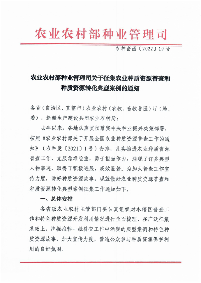 農(nóng)業(yè)種質(zhì)資源普查和種質(zhì)資源轉(zhuǎn)化典型案例征集通知