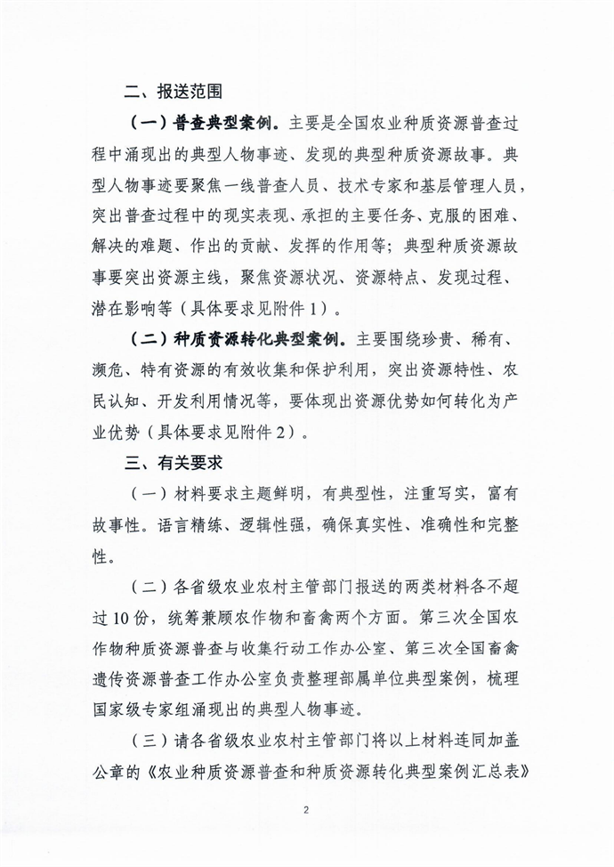 農(nóng)業(yè)農(nóng)村部種業(yè)管理司關(guān)于報送農(nóng)業(yè)種質(zhì)資源普查典型事跡的通知附件1、2.docx