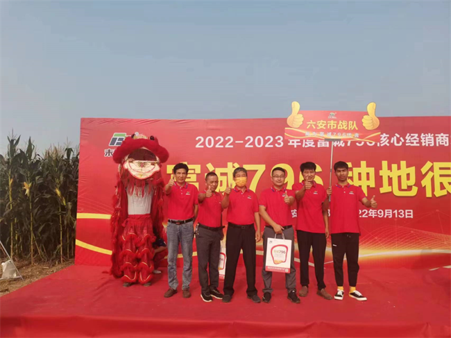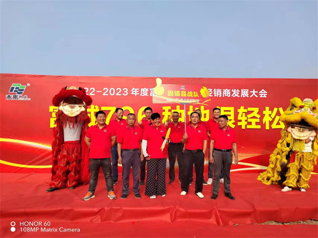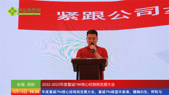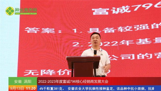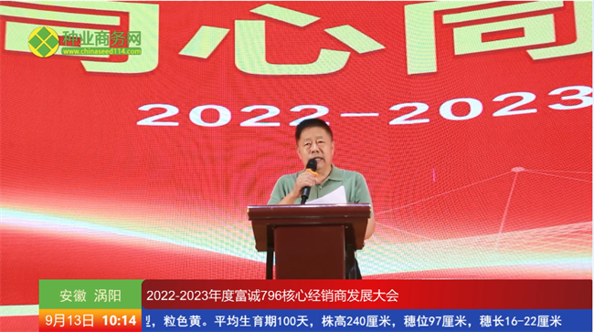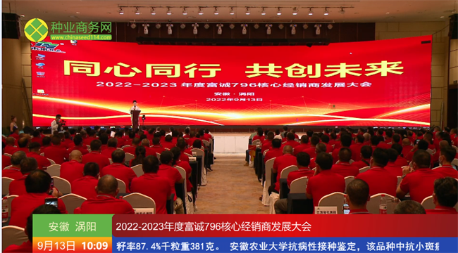 豐收的九月,繁花似錦,萬木崢嶸。9月13日,由安徽未來種業(yè)有限公司主辦的以“同心同行,共創(chuàng)未來”為主題的2022—2023年度富誠796核心經(jīng)銷商發(fā)展大會在安徽渦陽成功召開。安徽省渦陽縣農(nóng)業(yè)農(nóng)村局局長王昌元,安徽未來種業(yè)有限公司董事長王錦 、總經(jīng)理劉兆明等領(lǐng)導(dǎo)和嘉賓,以及來自江蘇、安徽、河南等地的480位核心經(jīng)銷商現(xiàn)場觀摩了富誠796的田間表現(xiàn)并進(jìn)行了深入的交流探討。