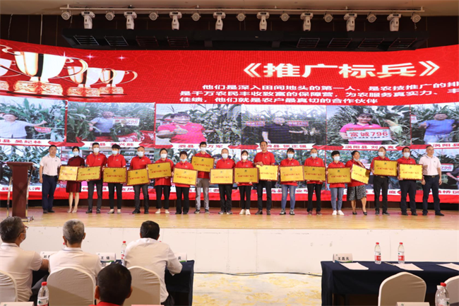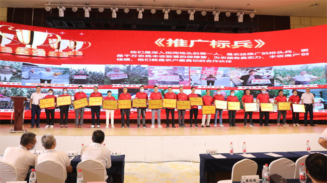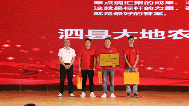 品種銷量的提高離不開廣大經(jīng)銷商的支持和厚愛,公司為了激勵更多的經(jīng)銷商在下一年度取得銷量的新突破,舉行了隆重的頒獎儀式。34位優(yōu)秀的零售商獲得推廣標(biāo)兵,8位代理商獲得銷售之星;泗縣大地農(nóng)業(yè)團隊獲得推廣“優(yōu)秀團隊”。