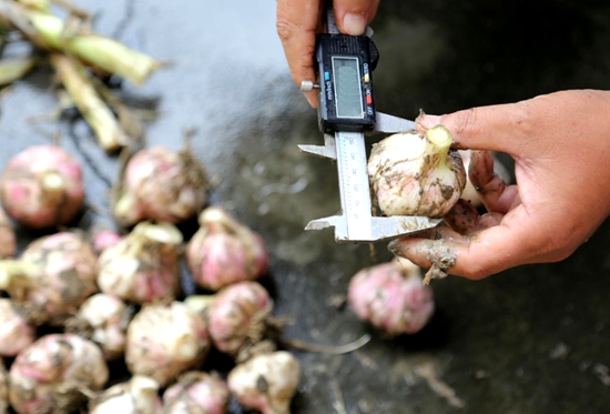 鱗莖由多個(gè)鱗芽(俗稱蒜瓣)組成,鱗芽數(shù)和鱗芽重是決定鱗莖產(chǎn)量的關(guān)鍵性狀,研究人員重點(diǎn)分析了這兩個(gè)性狀的選擇印記,發(fā)現(xiàn)這些鱗芽性狀候選基因要么僅在CG1中受到選擇,要么僅在CG2中具有選擇信號,使得鱗芽性狀在兩組群間分化明顯,推測鱗芽性狀在兩個(gè)組群間的進(jìn)化選擇是獨(dú)立進(jìn)行的。