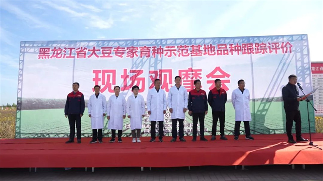 9 月 15 日,由黑龍江省農(nóng)業(yè)農(nóng)村廳主辦,黑河市農(nóng)業(yè)農(nóng)村局、五大連池市農(nóng)業(yè)農(nóng)村局承辦,齊齊哈爾市富爾農(nóng)藝有限公司、富爾五大連池市農(nóng)業(yè)科技有限公司組織實(shí)施的全省大豆專(zhuān)家育種示范基地品種跟蹤評(píng)價(jià)現(xiàn)場(chǎng)觀摩會(huì)在富爾五大連池市農(nóng)業(yè)科技有限公司大豆品種示范基地舉行,對(duì)第五積溫帶大豆專(zhuān)家育種示范基地的大豆品種現(xiàn)場(chǎng)進(jìn)行展示評(píng)價(jià)。