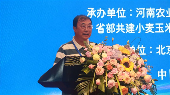 研討會上,湯繼華以《以基礎(chǔ)研究為突破提升玉米育種水平》為題作了報告。他首先分析了黃淮海玉米生產(chǎn)面臨的問題:近年來,氣候系統(tǒng)的不穩(wěn)定性加劇,極端天氣高發(fā)頻發(fā),病蟲害發(fā)生嚴重,河南玉米品種和配套技術(shù)也面臨嚴峻考驗。因此,迫切需要選育出適應(yīng)河南生產(chǎn)方式的高產(chǎn)、多抗、耐密、脫水快、適應(yīng)全程機械化生產(chǎn)的玉米新品種,為玉米生產(chǎn)提供品種保障和技術(shù)支持。