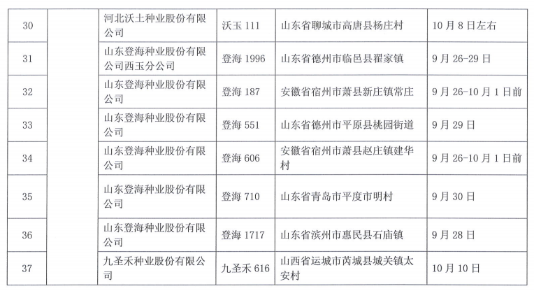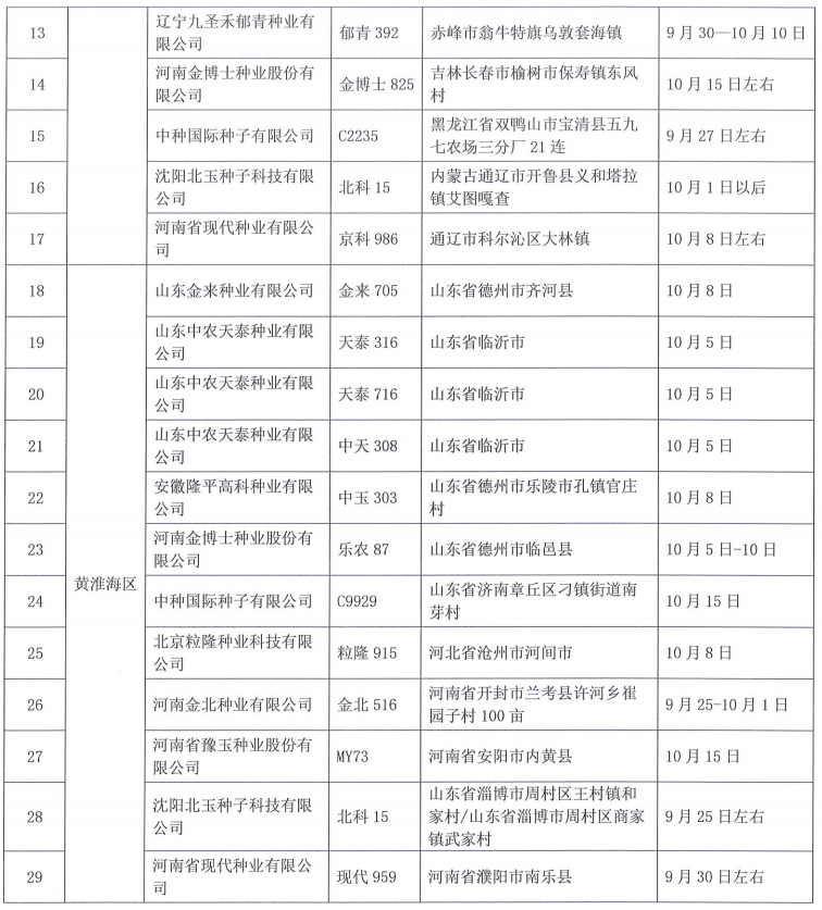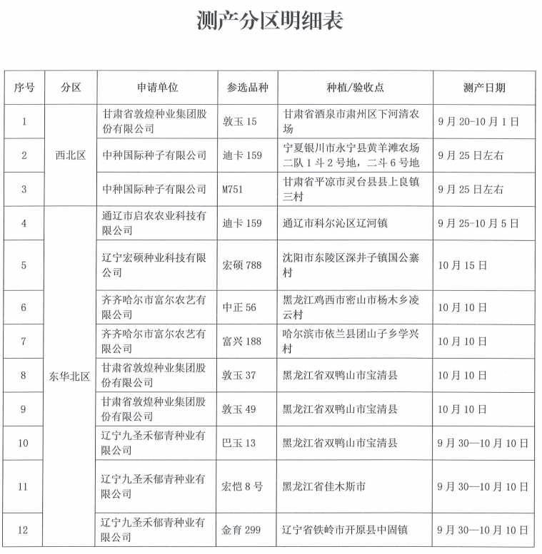 西北片區(qū)為9月20日-10月1日左右,東華北片區(qū)為9月25日-10月20日左右,黃淮海區(qū)為9月25日-10月15日左右。如因天氣變化,由牽頭單位與協(xié)會(huì)和專家溝通調(diào)整,每個(gè)片區(qū)原則上一次組織驗(yàn)收結(jié)束,如品種生育進(jìn)程相差較大,可安排二次。