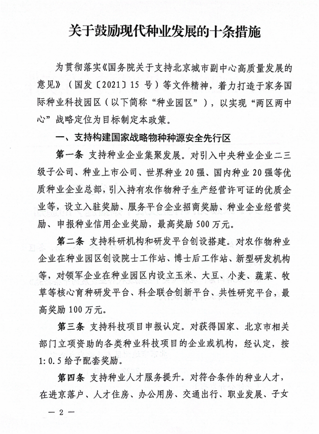 附:北京市通州區(qū)人民政府辦公室印發(fā)《關(guān)于鼓勵(lì)現(xiàn)代種業(yè)發(fā)展十條措施》的通知