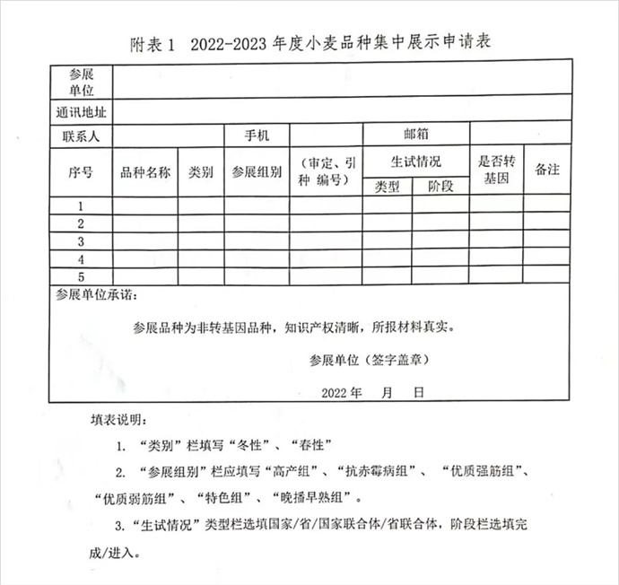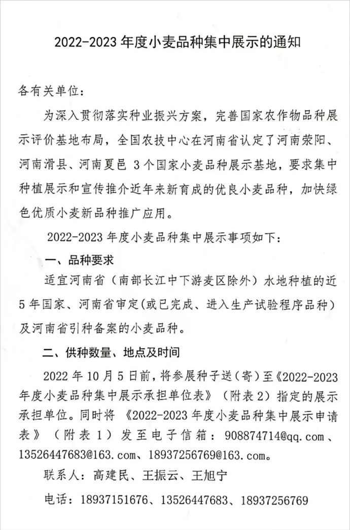 2022-2023年度小麥品種集中展示承擔(dān)單位表