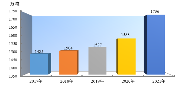 全年糧食產量(含薯類)1735.78 萬噸,比上年增加 152.38 萬噸,增產 9.6%。其中:夏糧產量 641.30 萬噸,增產 9.9%;秋糧產量 1094.48 萬噸,增產 9.5%。谷物產量中,小麥產量 639.75 萬噸,比上年增產 9.9%;玉米產量 1012.65 萬噸,增產9.1%。新疆玉米單產 608.06 公斤/畝遠高于全國玉米平均產量。