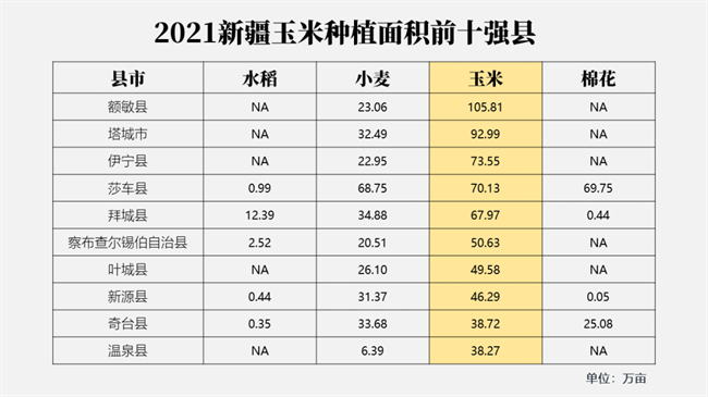 新疆第八類品種:其他玉米品種,包含青貯,種植面積在300萬畝左右。