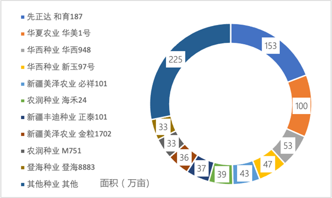 華西種業(yè):以華西968、新玉97、kws2564為代表,種植在210萬畝左右。