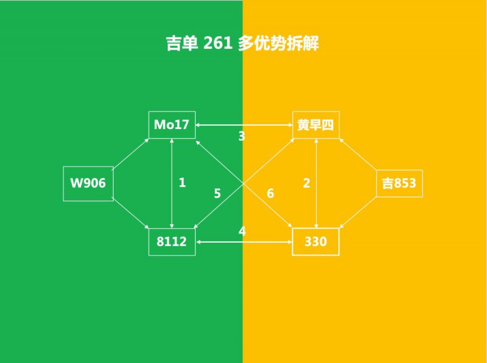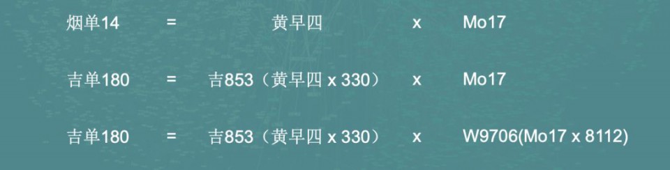 如最原始的組合煙單14 = 黃早四 ×Mo17,后來利用了330 與黃早四改良選育出吉853,重新組合為吉單180= Mo17 × 吉853,再后來利用Mo17 ×8112 選育出W9706,然后再與吉853 組合成吉單261。同樣在煙單14= 黃早四 ×Mo17模式中,只有一種優(yōu)勢,就是黃早四與MO17 的雜交優(yōu)勢,在吉單180 = Mo17 × 吉853,可以分解出二個優(yōu)勢,那就是Mo17 與黃早四優(yōu)勢及Mo17 與330 的二種優(yōu)勢(吉853 = 黃早四 ×330),如此可以在很多品種中找到三種優(yōu)勢、四種優(yōu)勢、五種優(yōu)勢、六種優(yōu)勢,六種優(yōu)勢就是最高境界,就是說構(gòu)成所有的材料之間都有優(yōu)勢,如構(gòu)母本的二個材料之間有強(qiáng)優(yōu)勢,構(gòu)成父本的二個材料之間有強(qiáng)優(yōu)勢,并且構(gòu)成母本的二個材料分別與父本的二個材料之間仍有優(yōu)勢。