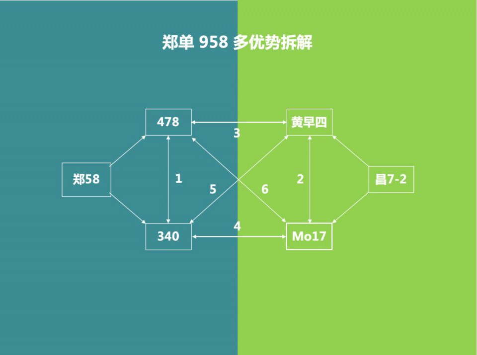 鄭單 958 就基本上符合這個模式,如果鄭58 是由478 與340 而來,昌7 是由黃早四與M017 而來,那么首先在群內(nèi)都有優(yōu)勢,就是二個優(yōu)勢了,478 與黃早四有優(yōu)勢是第三個優(yōu)勢,478 與M017 是瑞德與蘭卡,也不會差到哪里去,應(yīng)當(dāng)優(yōu)勢較強(qiáng),是第四個優(yōu)勢,同理340 與黃早四優(yōu)勢不強(qiáng),也算可以,340與M017的優(yōu)勢就很強(qiáng)應(yīng)當(dāng)是第五優(yōu)勢,所以這是個十分精典的組合,極其完美。