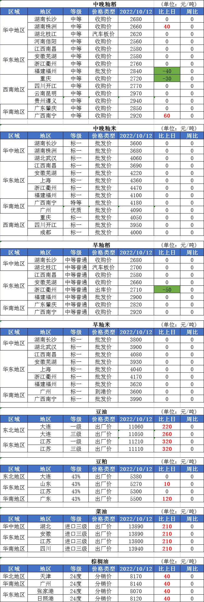 3、截至9月30日,主產(chǎn)區(qū)各類糧食企業(yè)累計收購早秈稻628萬噸,同比增加41萬噸;中晚秈稻364萬噸,同比增加86萬噸。