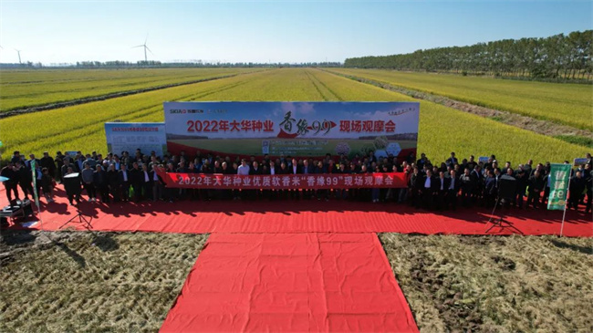 2022年10月12日,江蘇省大華種業(yè)集團(tuán)有限公司遲熟中粳優(yōu)質(zhì)軟米新品種“香緣99”現(xiàn)場(chǎng)觀摩會(huì)在江蘇臨海農(nóng)場(chǎng)隆重召開。