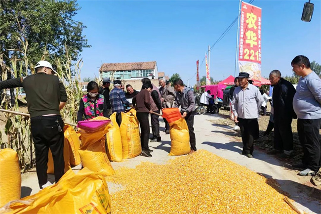 10月11日上午,在商丘市虞城縣舉辦了“農華221”高產優(yōu)質玉米品種機收測產觀摩會,當?shù)胤N糧大戶、農民專業(yè)種植合作社、糧食收購商及基層玉米籽粒聯(lián)合機收個體商戶等人參加本次粒收觀摩會議。