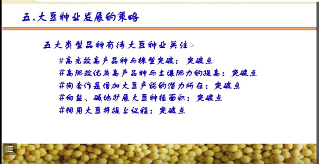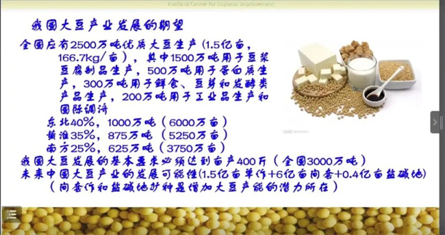 在保障食用大豆完全自給的基礎(chǔ)上,還應(yīng)具有一定的油用大豆和飼用大豆供給能力,真正實現(xiàn)自給自足,擺脫大豆進口依賴。我國大豆產(chǎn)業(yè)發(fā)展的基本要求畝產(chǎn)必須達到400斤,間套作和鹽堿地擴種是增加大豆產(chǎn)能的潛力所在。