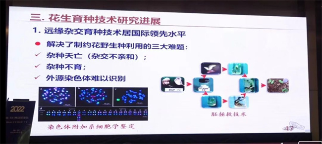 就花生育種水平而言,我國總體上處于國際先進(jìn)水平,局部領(lǐng)域領(lǐng)先世界。遠(yuǎn)緣雜交育種技術(shù)居國際領(lǐng)先水平,解決了制約野花生種利用的三大難題(雜種天亡、雜種不育、外源染色體難以識(shí)別);創(chuàng)制了一批聚合了野生種優(yōu)異性狀的新種質(zhì)(高油:含油量55-62.48%;高蛋白:蛋白含量30-31.5%;高抗青枯:抗性株率90%以上;抗網(wǎng)斑?。?級(jí)以下。);育成并推廣了一批種間雜交品種,我國利用遠(yuǎn)緣雜交技術(shù)育成遠(yuǎn)雜9102、遠(yuǎn)雜9307、遠(yuǎn)雜9847、遠(yuǎn)雜0025、桂花22、桂花26、桂花30、花育31花生品種;品質(zhì)優(yōu)異、綜合抗性好、豐產(chǎn)性好、生態(tài)適應(yīng)性強(qiáng)。
