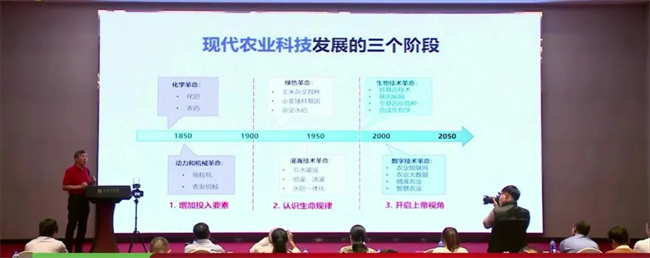現(xiàn)代農(nóng)業(yè)科技發(fā)展三個階段:第一階段,增加投入要素:化學(xué)革命(化肥、農(nóng)藥)和動力機械革命(拖拉機、農(nóng)業(yè)機械);第二階段,認識生命規(guī)律:綠色革命(玉米雜交育種、小麥矮稈基因、雜交水稻)和灌溉技術(shù)革命(節(jié)水灌溉、噴灌滴灌、水肥一體化);第三階段,開啟上帝視角:生物技術(shù)革命(轉(zhuǎn)基因技術(shù)、基因編輯、全基因組育種、合成生物學(xué))和數(shù)字技術(shù)革命(農(nóng)業(yè)物聯(lián)網(wǎng)、農(nóng)業(yè)大數(shù)據(jù)、精準農(nóng)業(yè)、智慧農(nóng)業(yè))