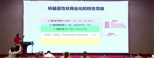 轉(zhuǎn)基因性狀商業(yè)化綜合效益;比傳統(tǒng)育種具有顯著性、普適性、穩(wěn)定性和疊加性,提高作物產(chǎn)量10-15%,提升糧食品質(zhì)2-4%,提升生產(chǎn)效率15-20%.