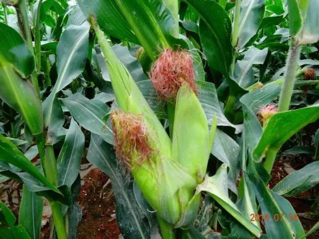 2、干旱缺水,雄穗抽不出或抽時(shí)過(guò)長(zhǎng),雌雄不同期,難以相遇受精,造成玉米多穗。玉米喇叭口至抽雄期是需水臨界期,如果缺水造成卡脖旱,雄穗出不來(lái)或出來(lái)時(shí)間過(guò)長(zhǎng),雌蕊花粉絲已死,“雌雄難遇”即使抗旱澆水,能夠抽天英,由于高溫雌穗發(fā)育落后,不能及時(shí)吐絲,雄穗散粉結(jié)束后,雌穗才開(kāi)始吐絲,田間沒(méi)有花粉,不能受精,花期不遇,營(yíng)養(yǎng)下移,刺激下部腋芽生長(zhǎng),形成一株多棒。