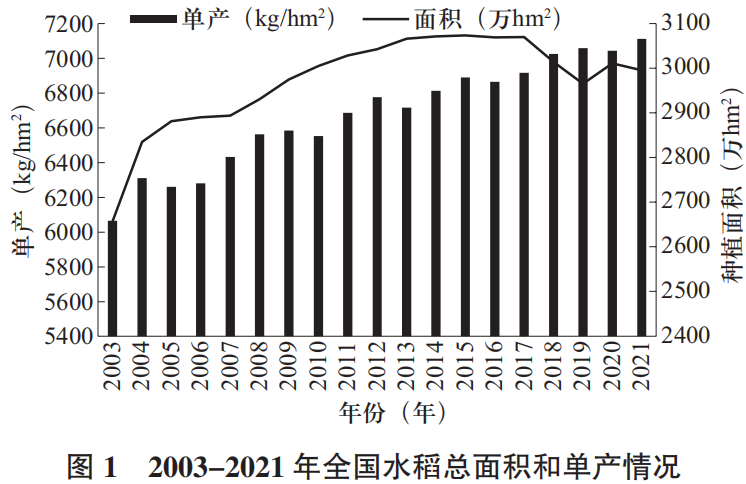 我國從2011年到2021年,水稻總產(chǎn)已連續(xù)11年穩(wěn)定在2億t以上,為糧食安全作出了重要貢獻,滿足了60%人口的口糧需求,但受種植面積、品種、自然環(huán)境等的影響,水稻總產(chǎn)量持續(xù)增長難度較大。