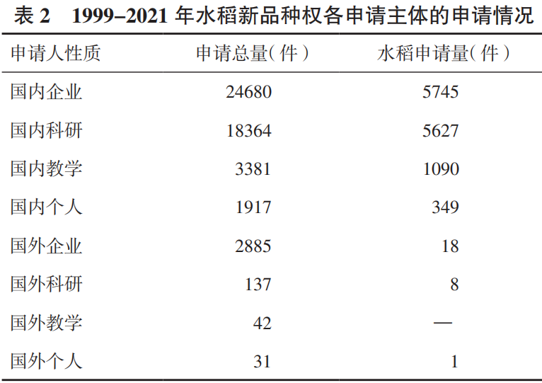 ?3.2.2 水稻品種權(quán)申請情況