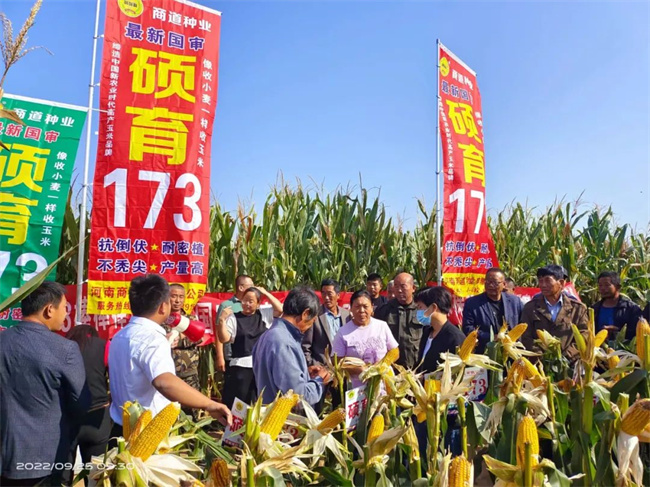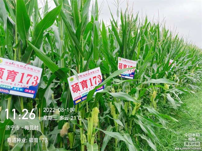 2022年黃淮海玉米主產(chǎn)區(qū)注定是一個極其不平凡的一年。播種到苗期高溫干旱,花期嚴(yán)重高溫?zé)岷Γ酀{期各種病蟲害的侵襲,8月底9月初又遭遇兩場臺風(fēng),給玉米安全生產(chǎn)造成嚴(yán)重威脅。碩育173,因其籽粒產(chǎn)量高、品質(zhì)優(yōu)良、綜合抗病性和抗逆性好、株高和穗位高適宜等優(yōu)良特性,在今年玉米生長關(guān)鍵時期遭遇高溫、干旱、陰雨、玉米螟蟲害發(fā)生較重等不利逆境條件下,依然表現(xiàn)出綜合性狀優(yōu)良的突出優(yōu)勢,市場推廣應(yīng)用前景廣闊。
