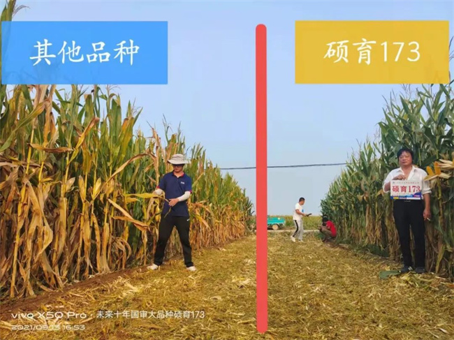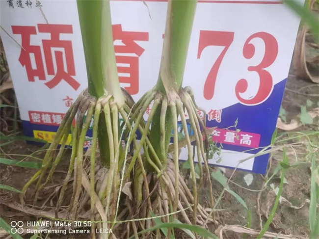 高抗倒伏。碩育173,株高250厘米左右,穗位90厘米左右比例適宜。株型緊湊,莖稈粗壯,彈性好,氣生根發(fā)達,抓地牢,抗倒折能力強。自市場推廣以來,經(jīng)歷多次大風(fēng)和強降雨等自然災(zāi)害的情況下,無倒折情況發(fā)生,表現(xiàn)出優(yōu)秀的抗倒折能力。