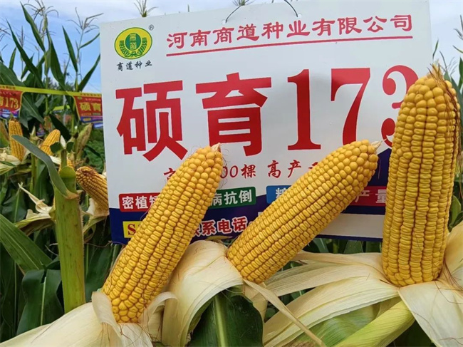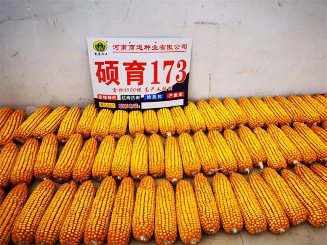 果穗均勻。碩育173穗長17-20厘米,穗行16-20行,穗軸紅色,籽粒金黃,長馬齒型,果穗均勻,容重高,品質(zhì)好。